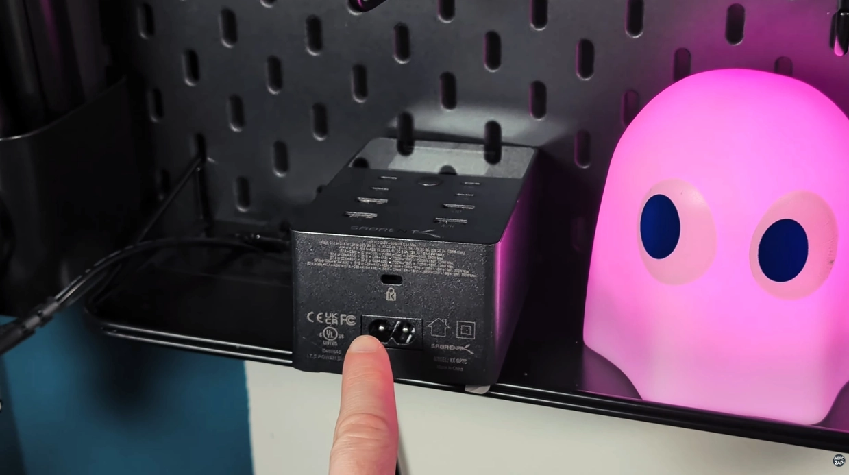 This unit is hefty and heavy, which I actually prefer for desktop gear as it stays put on the desk. It features four USB-A and four USB-C ports, providing a total output of 252W. This is enough to handle my Steam Deck, laptops, and all my recording equipment without breaking a sweat.