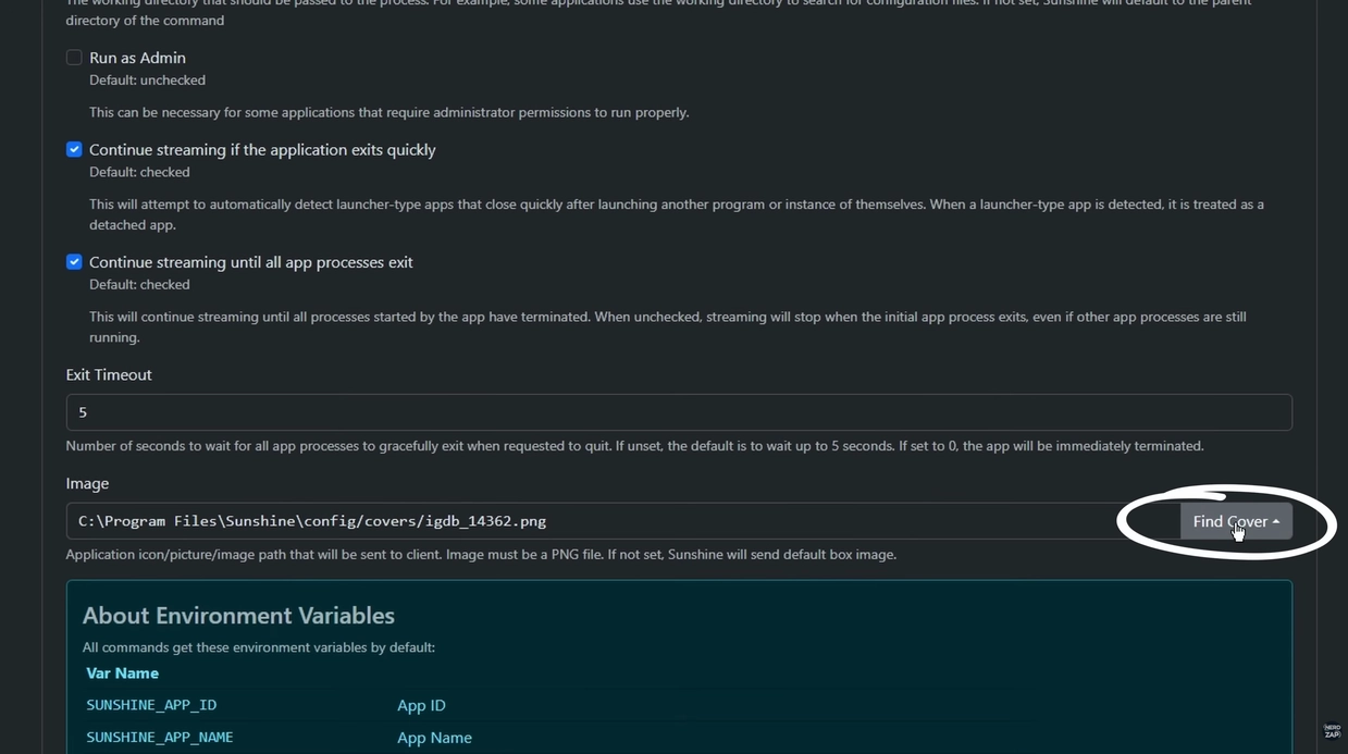 - In Sunshine's Configuration > Video settings, set it to capture this specific display name.